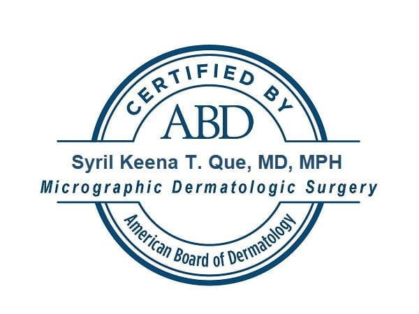 Both Syril Que, MD, and Shelby Kubicki, MD, completed ACGME-accredited fellowships and subsequently passed the Micrographic Dermatologic Surgery subspecialty board exam. Both are members of American College of Mohs surgery.